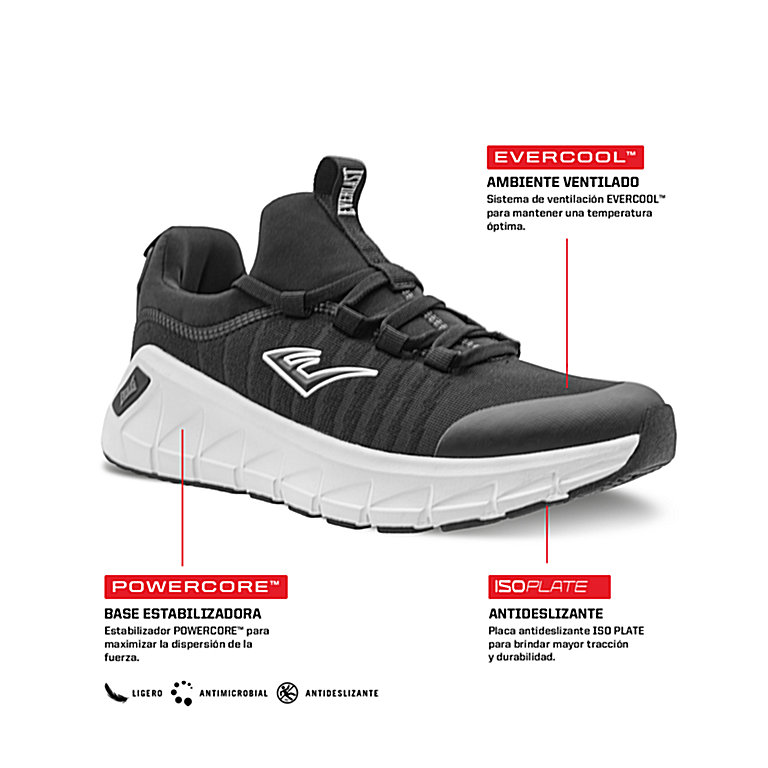 Para el hombre que vive la ciudad a su propio ritmo. Este tenis combina la herencia de Everlast con un diseño moderno en blanco y negro. Ideal para el día a día, te ofrece la comodidad de un calzado deportivo con el estilo de un sneaker urbano.
